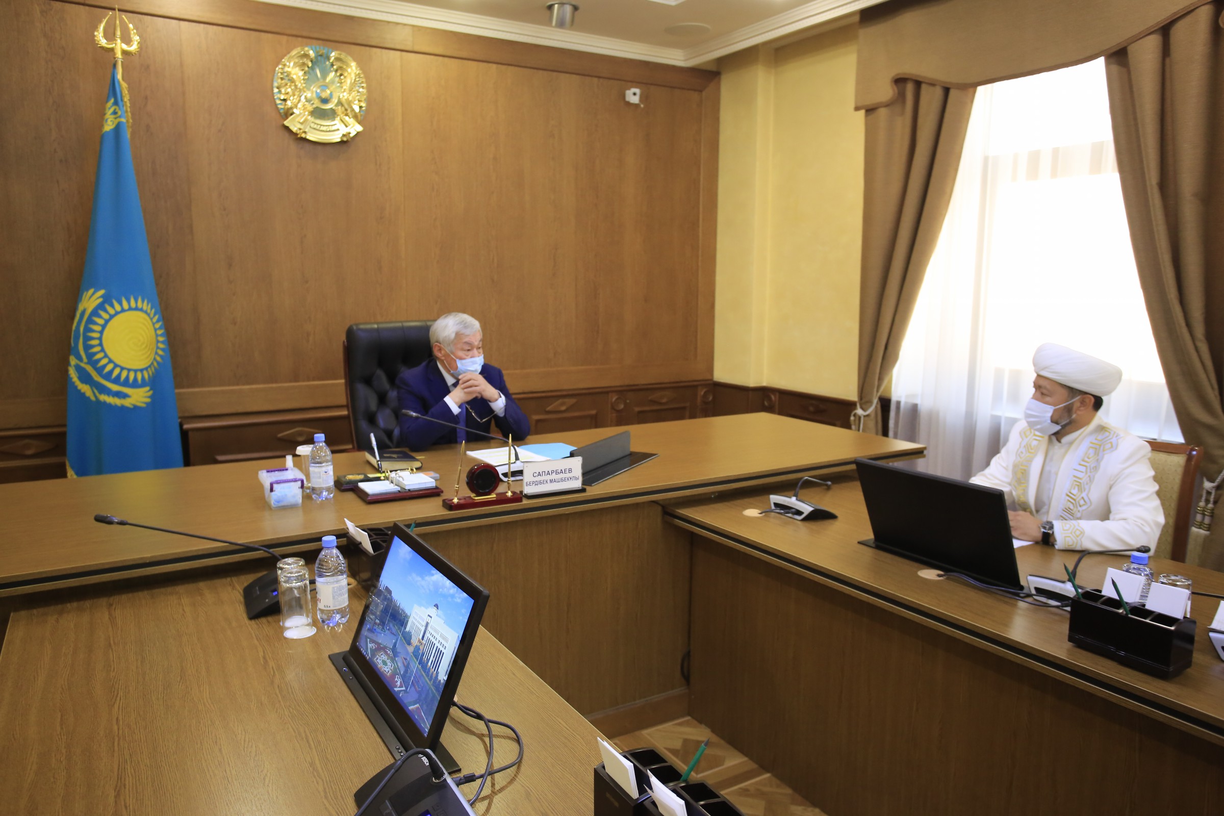Бүгін Жамбыл облысына жұмыс сапарымен келген Бас мүфти Наурызбай қажы Тағанұлы өңір басшысы Бердібек Сапарбаевпен кездесті.