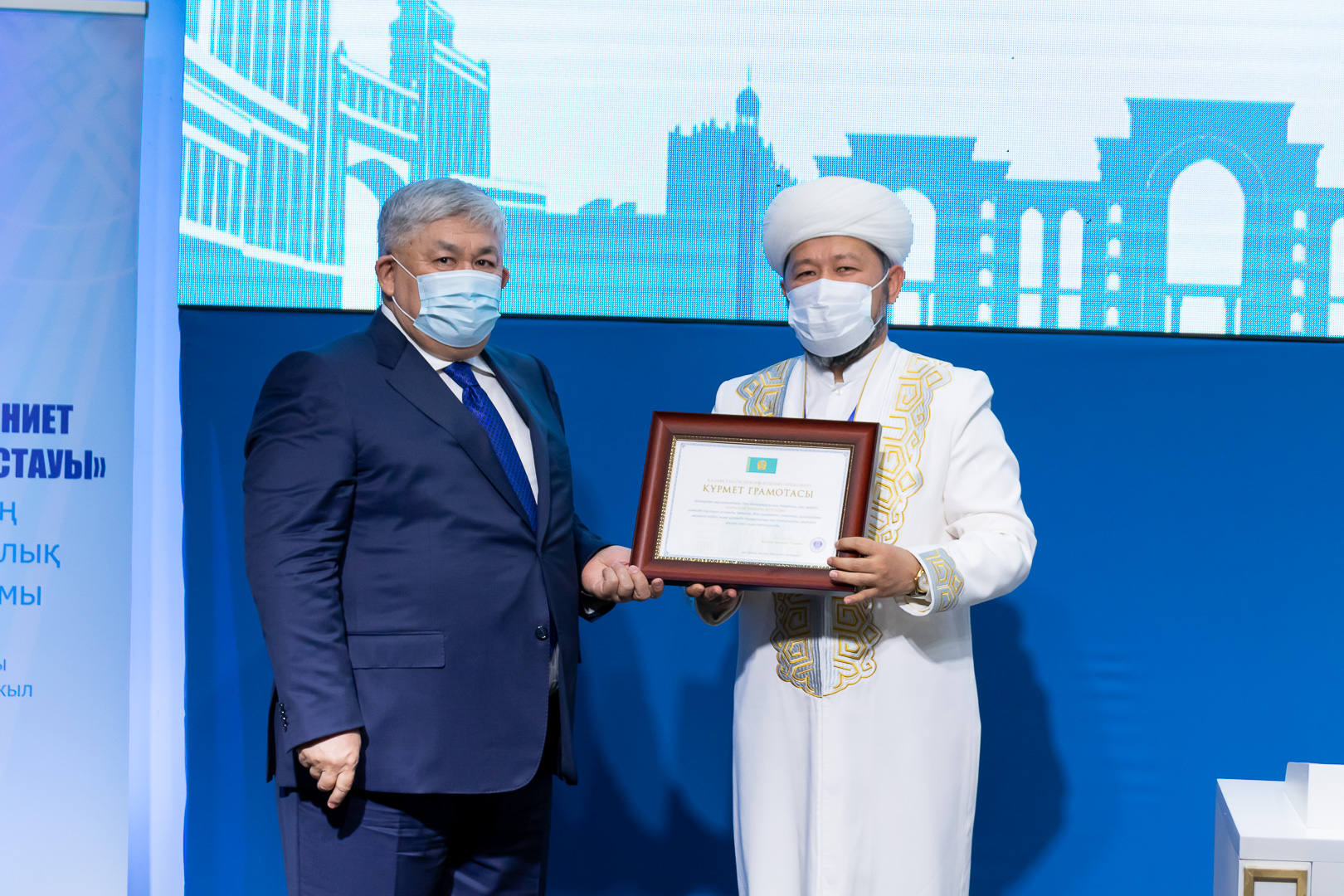 Елордада өткен Қазақстан мұсылмандары діни басқармасының 30 жылдық мерейтойына арналған «Ислам – мәдениет пен ізгіліктің бастауы» атты имамдардың IV республикалық онлайн-форумында ҚМДБ Төрағасы Наурызбай қажы Тағанұлы Қазақстан Президентінің Құрмет грамотасымен марапатталды.