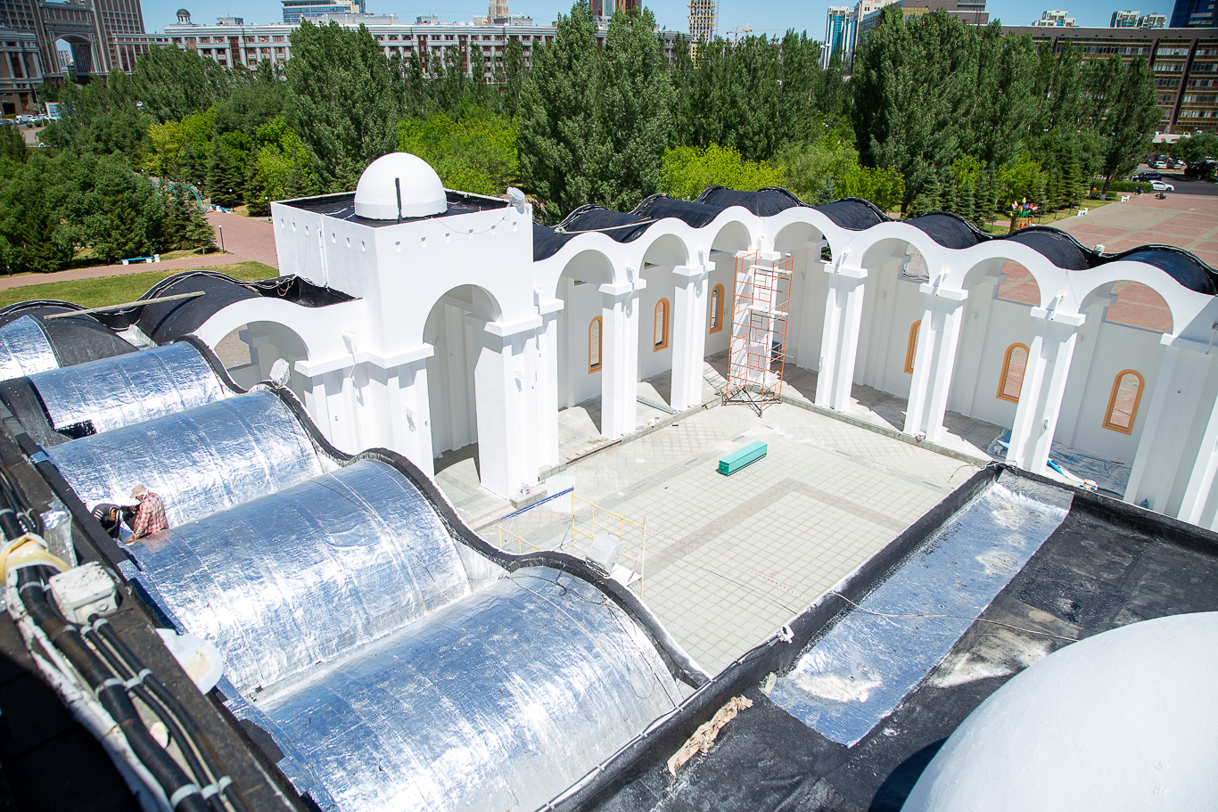 «Нұр Астана» мешітінде қайта жөндеу жұмыстары басталғаны бұған дейін хабарлаған болатын. Қазір құлшылық үйінің шатыры, мұнарасы мен қабырғаларына күрделі жөндеу жұмыстары жүргізілуде.