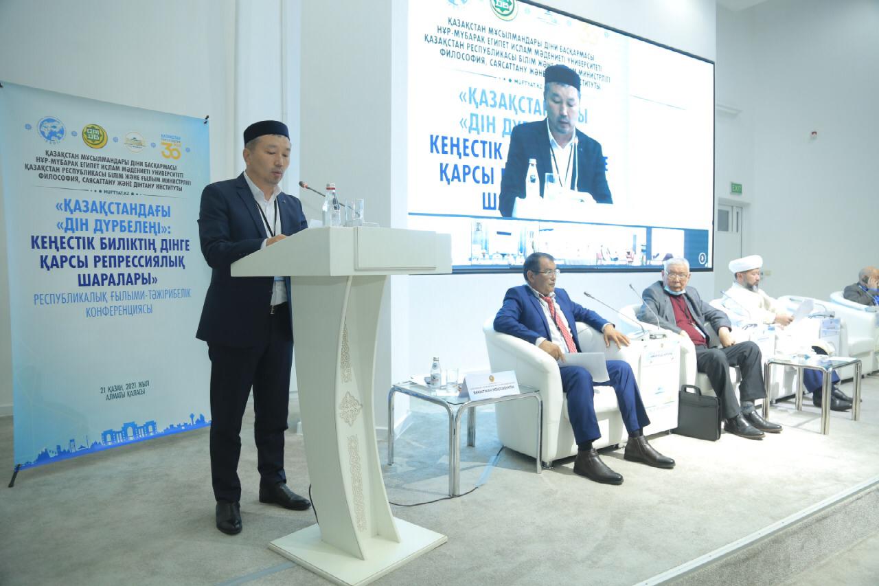 «ҚАЗАҚСТАНДАҒЫ «ДІН ДҮРБЕЛЕҢІ»: КЕҢЕСТІК БИЛІКТІҢ ДІНГЕ ҚАРСЫ РЕПРЕССИЯЛЫҚ ШАРАЛАРЫ» республикалық ғылыми-тәжірибелік конференциясында бірқатар тарихшы ғалымдар, қоғам қайраткерлері мен өлкетанушылар құттықтау сөз сөйлеп, баяндама жасады.