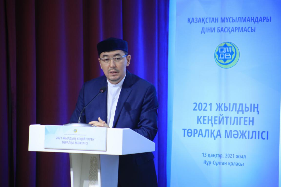 Қазақстан мұсылмандары діни басқармасы ғимаратындағы «әл-Фараби» залында өткен 2021 жылдың кеңейтілген Төралқа мәжілісінде ҚМДБ-ның бөлім басшылары баяндама жасады.