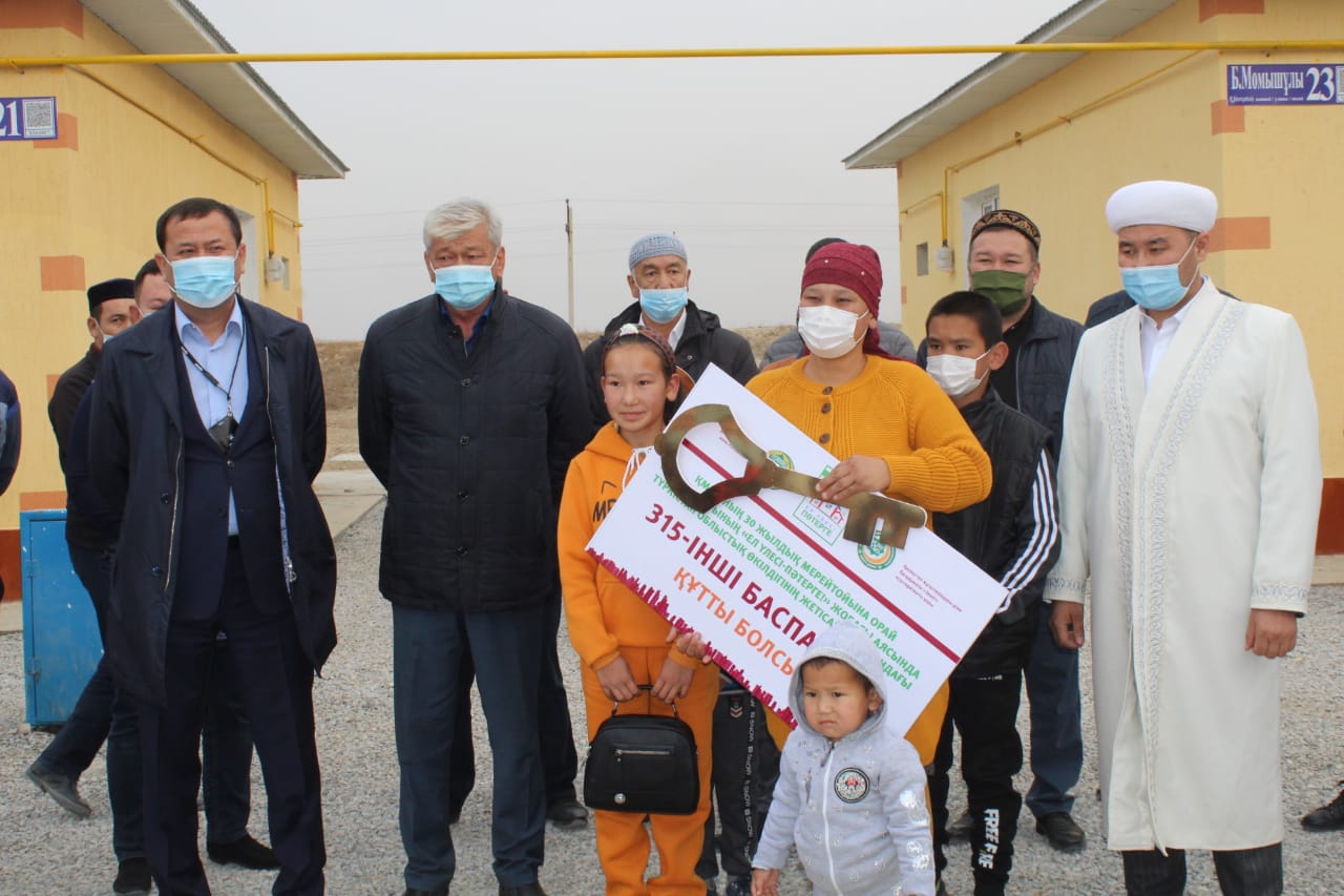 Пәтер иелерінің бәрі – тұрмысы төмен, көпбалалы мұқтаж отбасылар. Баспана кілтін табыстау рәсіміне меценат Бахараддин Аблазимов, аудан әкімі Жамантай Бейсенбаев, ауданның бұрынғы имамы Бекзат Сыздықов арнайы қатысты. Аудан имамы Жорабай Дулатбаев баспана салған азаматтардың баршасына ҚМДБ төрағасы, Бас мүфти Наурызбай қажы Тағанұлының атынан ризашылығын білдірді.