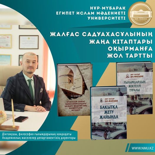 Нұр-Мүбарак университеті Ғылыми кеңесі ұсынысымен дінтанушы, философия ғылымдарының кандидаты, Академиялық мәселелер департаментінің директоры Жалғас Садуахасұлының 3 кітабы жарық көрді.
