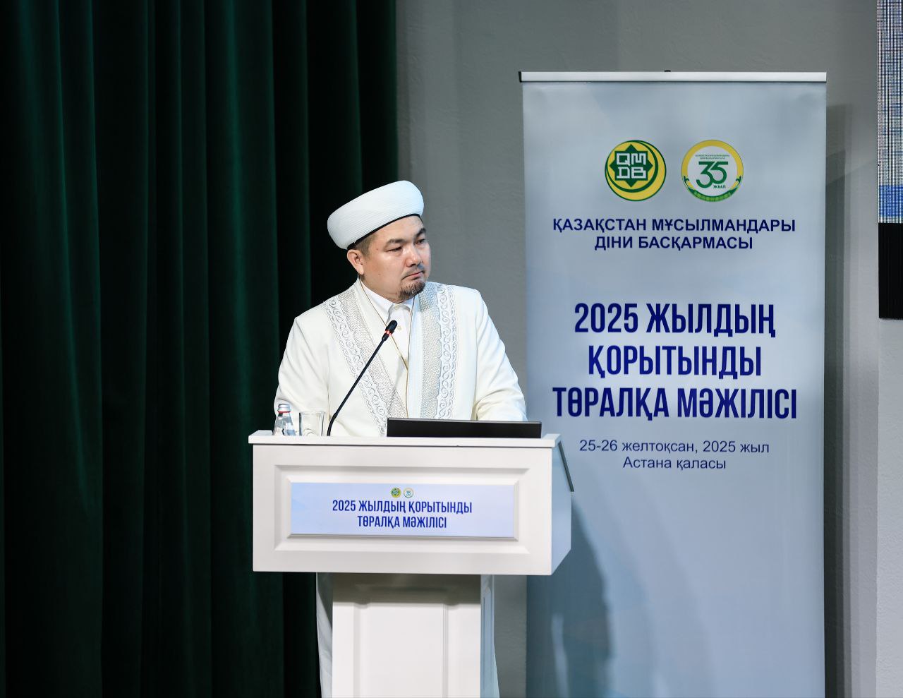 Қазақстан мұсылмандары діни басқармасының Төралқа мәжілісінде республикалық маңызы бар қалалар мен облыстардың Бас имамдары 2025 жылы атқарылған жұмыстар бойынша жылдық есеп беруде.