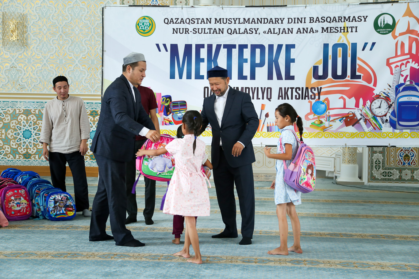 Благотварительная акция продолжелась в конце недели в мечети Альжан Ана. В этом году благотворительное мероприятие, организованное мечетью охватило 80 семей. Главный имам Нур-Султана Наурызбай кажы Таганулы принял участие в радостном событии и вручил им школьные рюказаки с необходимыми пренадлежностями.