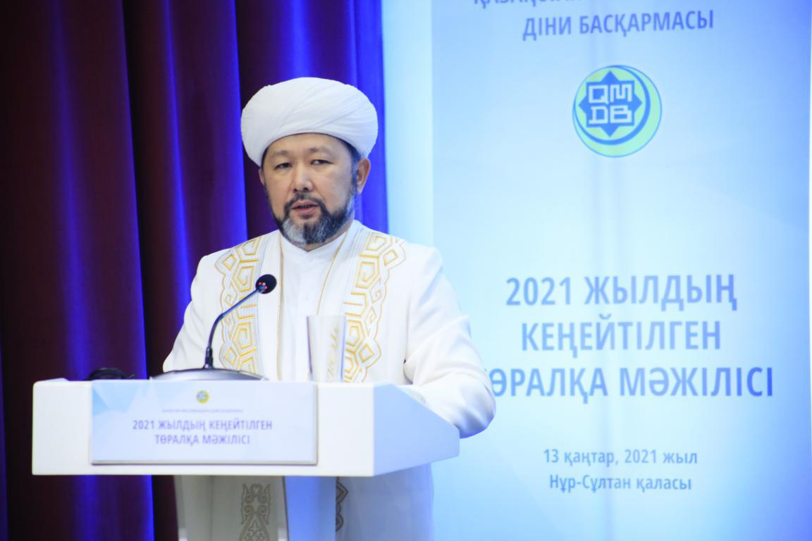 Первым на встрече выступил председатель Духовного управления мусульман Казахстана. Верховный муфтий представил направления работы Духовного управления на 2021 год и план работы Духовного управления в честь 30-летия Независимости страны.